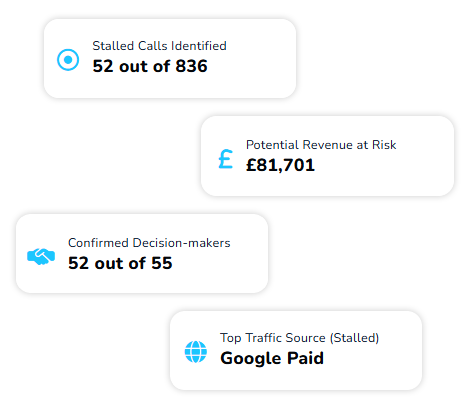 Our Intelligence Suite uses AI to transcribe calls, analyse tone, and automatically tag outcomes. From spotting buying signals to flagging at-risk leads, you’ll know exactly where to focus effort for maximum impact.